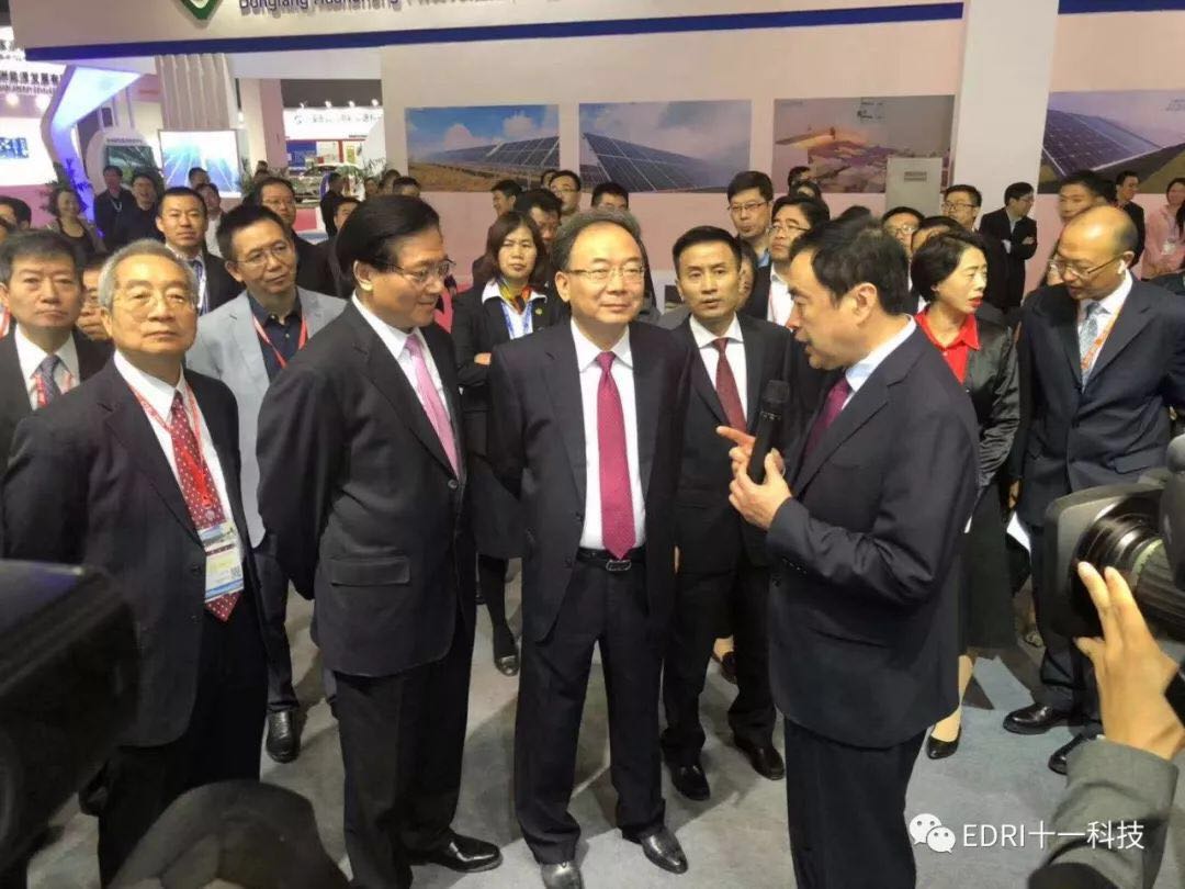 當小敏書記、黃欽市長來到十一科技展臺時,受到十一科技熱烈歡迎,趙振元同志就十一科技的公司情況,新能源領域、集成電路領域的情況,向小敏書記、黃欽代市長作了簡要匯報,小敏書記對十一科技取得的成就給予了充分肯定,對無錫產業發展所作的貢獻給予高度贊揚,在場的領導對十一科技所取得的成績紛紛表示贊賞。