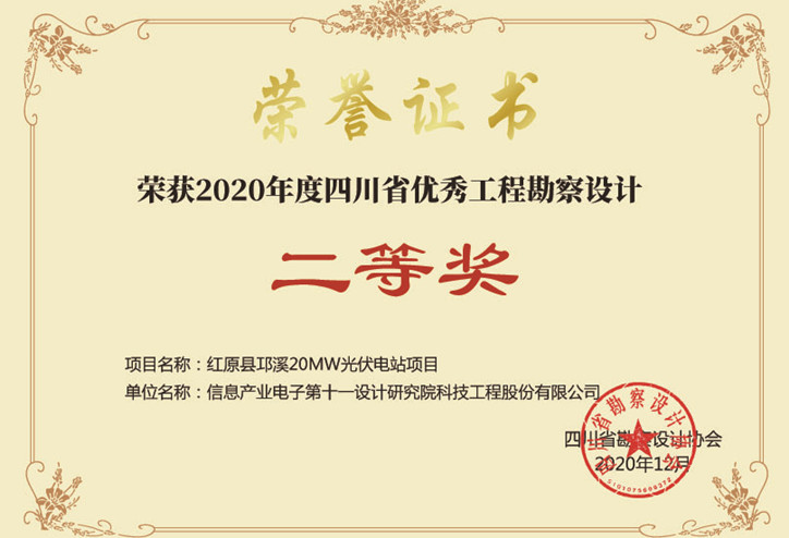 • Hongyuan Qiongxi 20MW PV Power Station Project of Sichuan Province Second Prize