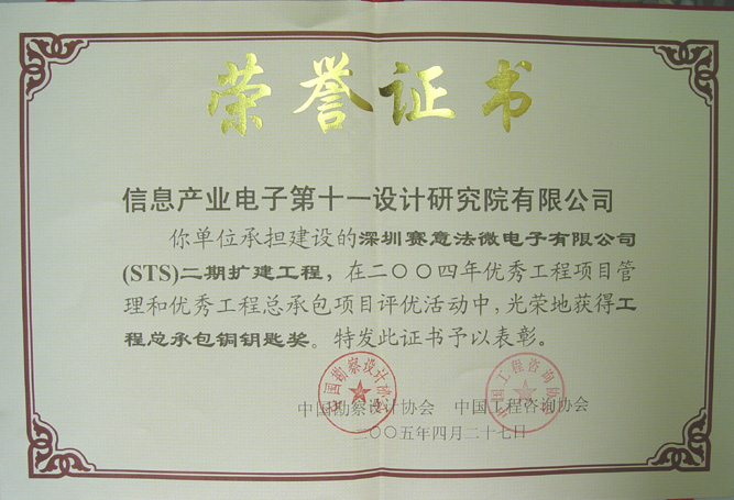 深圳賽意法微電子二期工程工程總承包銅鑰匙獎